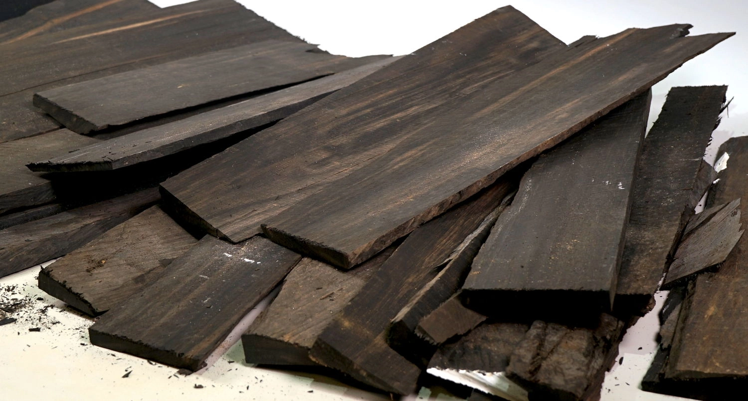 Eb040 Ebony assortment of different remnants and pieces, ca. 400 mm length