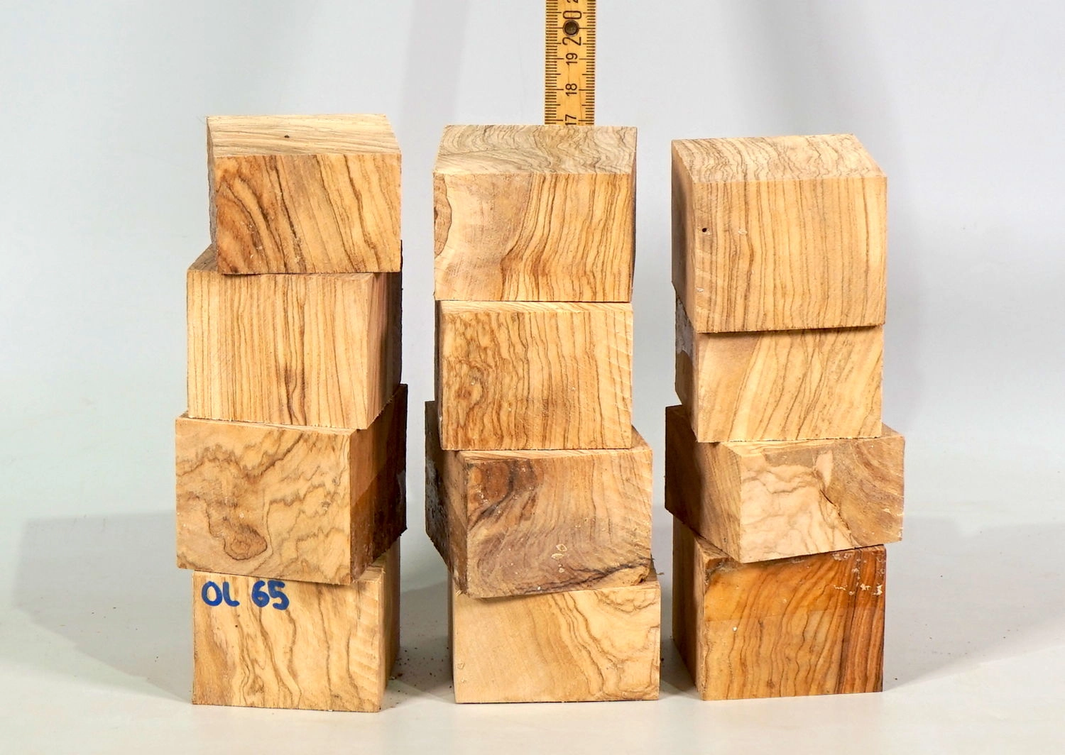 Ol065 Wild-Olivenholz Sortiment 12 Würfel a ca. 60 x 60 x 35-50 mm